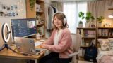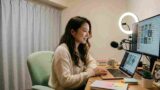 通勤ルームは防音対策がしっかりと施されており、背景も生活感のないシンプルな壁や可愛らしいインテリアに統一されています。