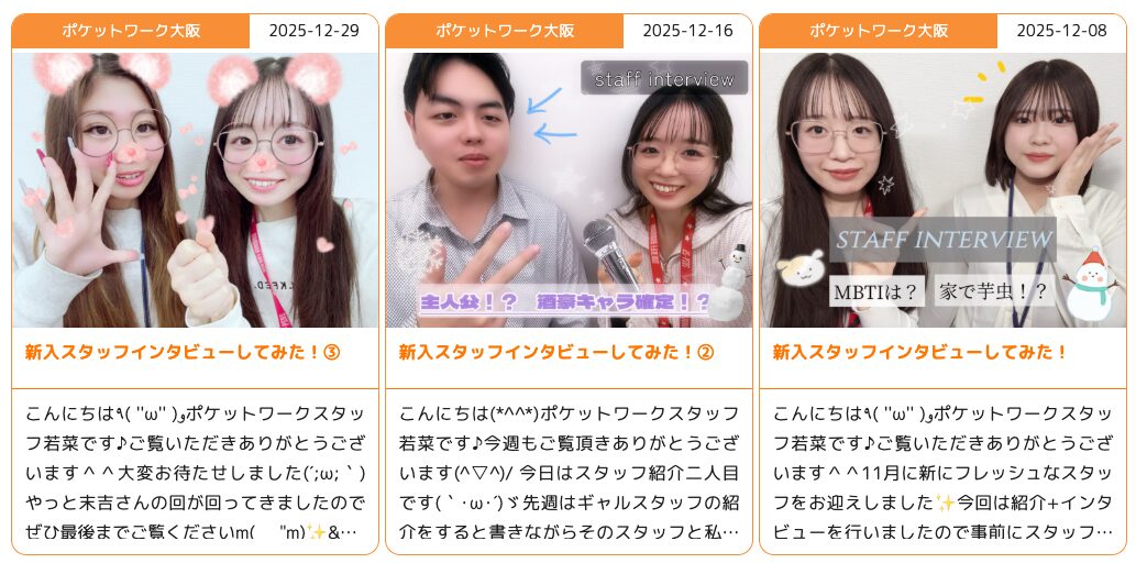 ポケットワーク大阪のスタッフの評判は?女性にも優しいサポート体制を取材!
